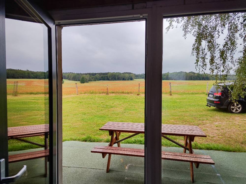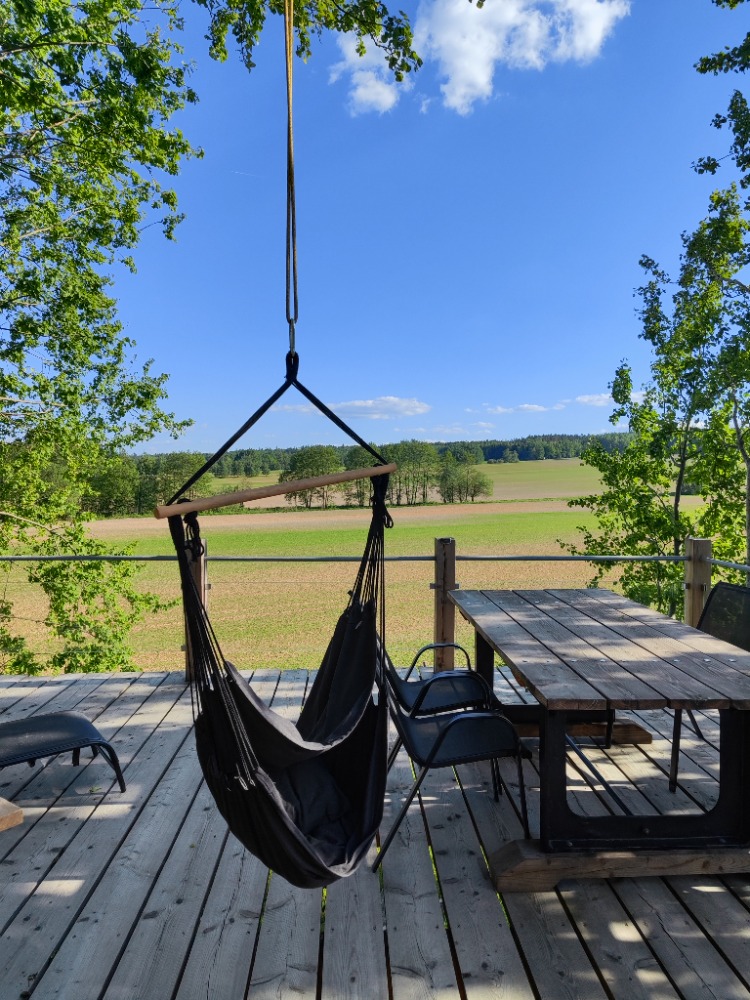 V plně vybavené kuchyňce najdete mikrovlnku, varnou konvici i plotýnku, takže si snadno připravíte snídani do postele nebo večerní čaj. Venku na vás čeká gril pro pohodové večeře pod širým nebem. Největším lákadlem je prostorná terasa s posezením a houpačkou, odkud se otevírá nádherný výhled do polí a na zvířátka na farmě pod vámi. Stačí se posadit, vypnout telefon a jen pozorovat, jak se den pomalu mění v tichý, hvězdami posetý večer – přesně tak vypadá váš dokonalý OFF.